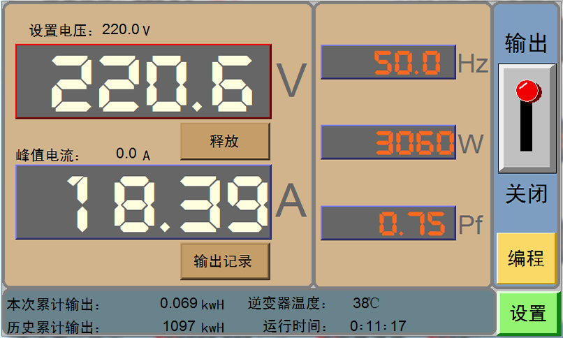 ? 超大7英寸觸摸屏顯示各項參數(shù):電壓、頻率、功率、功因、電流、峰值電流、溫度、電量、時間、相位角、阻抗值及電壓和電流的實時曲線